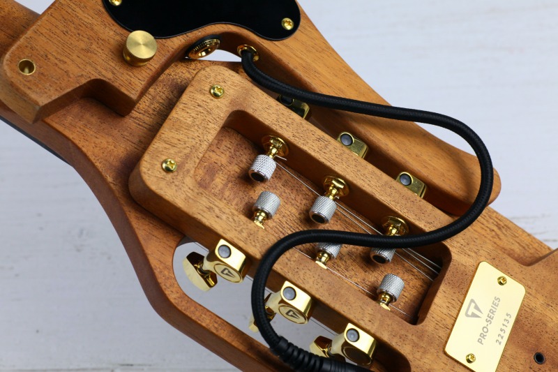 弦交換の際はヘッドにポールエンドがあり、ボディ側でチューニングをします。
